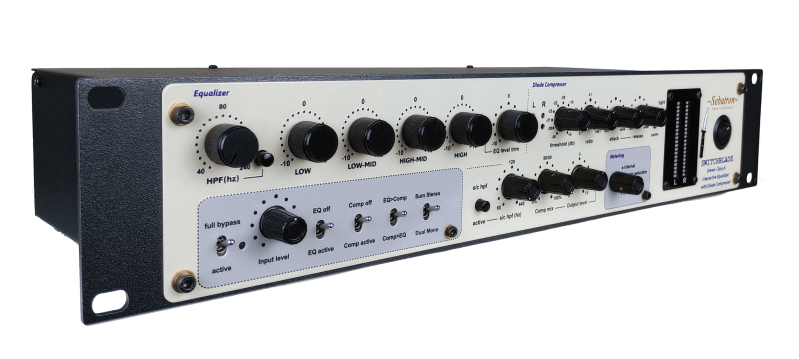 The Sebatron Switchblade is a high quality, highly versatile stereo broad band Equalizer coupled with a stereo Diode Compressor.